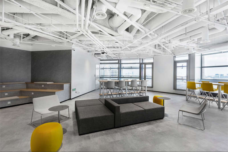 以方塊切割空間,幾何造型的演變、堆疊,創(chuàng)建出矩陣空間的實體形態(tài)。白色,灰色,明黃充斥,隨意散落在空間中,看似不經(jīng)意的堆砌,卻是空間中不可忽視的點(diǎn)綴。