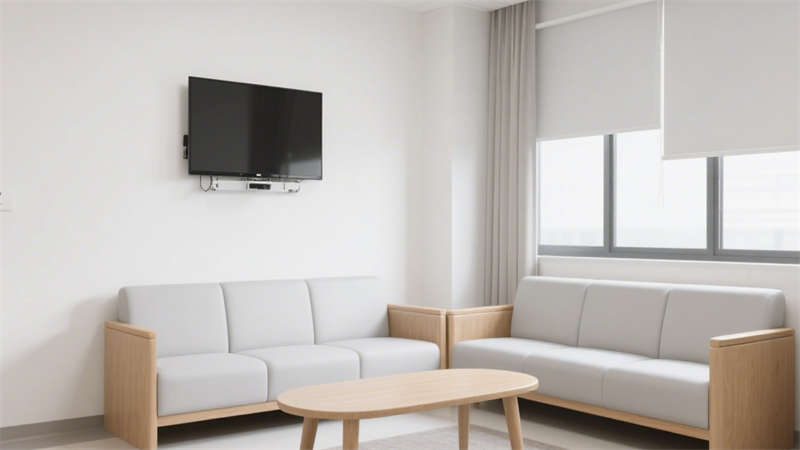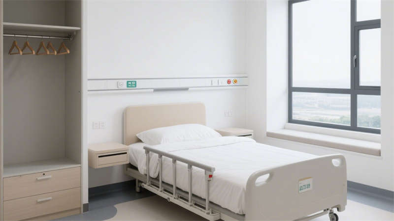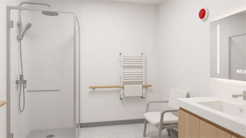 居住房間內(nèi),家具選擇圓角設(shè)計(jì),減少意外碰撞帶來的傷害;床頭設(shè)置緊急呼叫按鈕,方便老人在需要時(shí)快速尋求幫助,按鈕位置高度適中,便于老人伸手觸碰。室內(nèi)采光充足,搭配柔和的照明系統(tǒng),避免強(qiáng)光刺激老人眼睛,同時(shí)保證夜間行走時(shí)的光線亮度。色彩搭配以溫暖柔和的色調(diào)為主,營造溫馨舒適的居住氛圍,幫助老人緩解焦慮情緒,更快適應(yīng)養(yǎng)老院的生活環(huán)境。整體設(shè)計(jì)在滿足適老化功能需求的同時(shí),兼顧現(xiàn)代風(fēng)格的美觀與實(shí)用性,為老人提供一個(gè)安全、舒適、溫馨的居住空間。