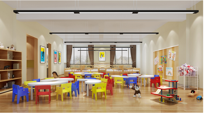 由于線條簡(jiǎn)單、裝飾元素少,現(xiàn)代簡(jiǎn)約需要軟裝來配合。如沙發(fā)與玩具等。軟裝到位是現(xiàn)代粉飾的關(guān)鍵。多功能的個(gè)性空間功能與空間組織,主要以木色為主,沒有太重,太跳的的顏色。以簡(jiǎn)潔的造型和別出心裁的擺放,打造溫馨,優(yōu)質(zhì)的幼兒園環(huán)境。