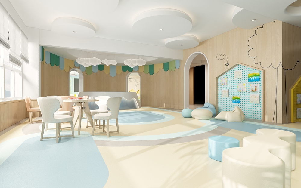 幼兒園的活動教室是孩子們進(jìn)行各種室內(nèi)活動的場所,是一個小型的多功能活動空間,我們在設(shè)計幼兒園活動教室的時候要秉持著讓孩子們更喜歡待在幼兒園這個目的。孩子們在活動室可以進(jìn)行上課,桌面游戲,聽故事講故事,唱歌,跳舞,開展興趣小組活動,扮家家,吃午飯吃點(diǎn)心等等。